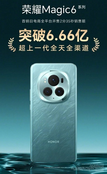 По заявлению производителя, флагманская линейка оказалась очень популярной. За первые 2 минуты 35 секунд продаж Honor Magic6 Pro и Magic6 были проданы на сумму более 660 млн юаней (около $104 млн). Этот результат превысил рекорд моделей Honor Magic5, которые поступили в продажу в марте прошлого года.