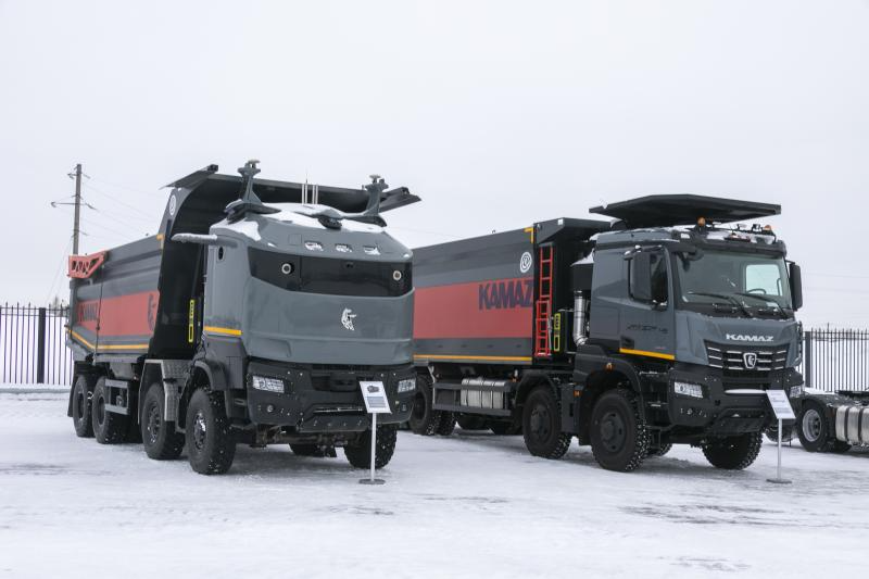 В числе новинок был продемонстрирован перспективный беспилотный карьерный грузовик «Робокоп». Игорь Шувалов осмотрел этот самосвал на испытательном полигоне КамАЗ, где также представлены другие образцы техники, включая беспилотный грузовик.