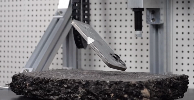 По итогам тестов задняя часть iPhone 15 Pro была разбита при падении на асфальт с высоты всего 1 метр, а экран разбился после падения с высоты 1,5 метра.
