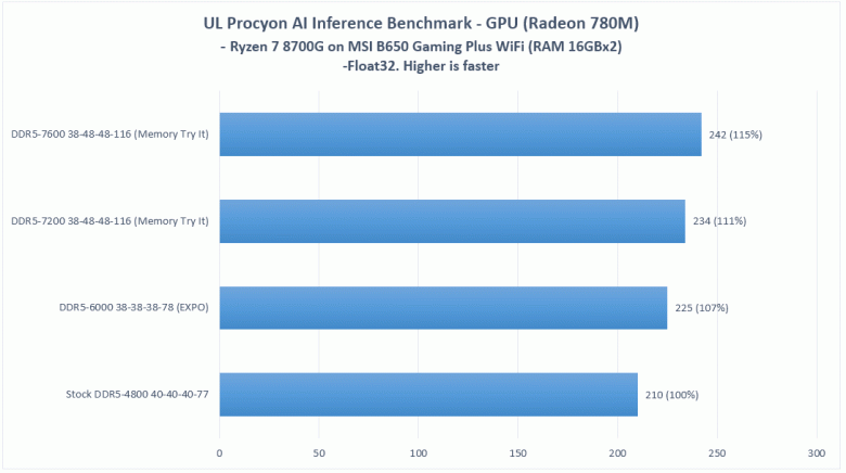 Установить более быструю ОЗУ, и искусственный интеллект заработает быстрее. APU Ryzen 8000G получают прирост от быстрой памяти и в этом направлении