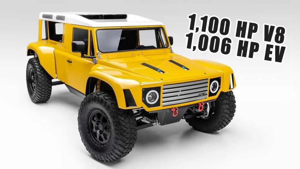 Во-первых, он доступен с двумя вариантами трансмиссии, оба из которых имеют четырехзначные значения мощности. Первый получил расположенный посередине двигатель V8 мощностью 1100 л.с. Второй вариант — полностью электрический, мощностью 1006 л.с. Он питается от литий-ионного аккумулятора емкостью 75 кВт•ч.