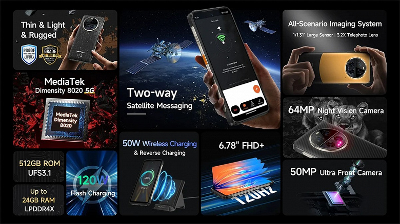 Двухсторонняя спутниковая связь, камера ночного видения, IP69K, 12/512 ГБ памяти и цена 530 долларов. Представлен смартфон Ulefone Armor 23 Ultra