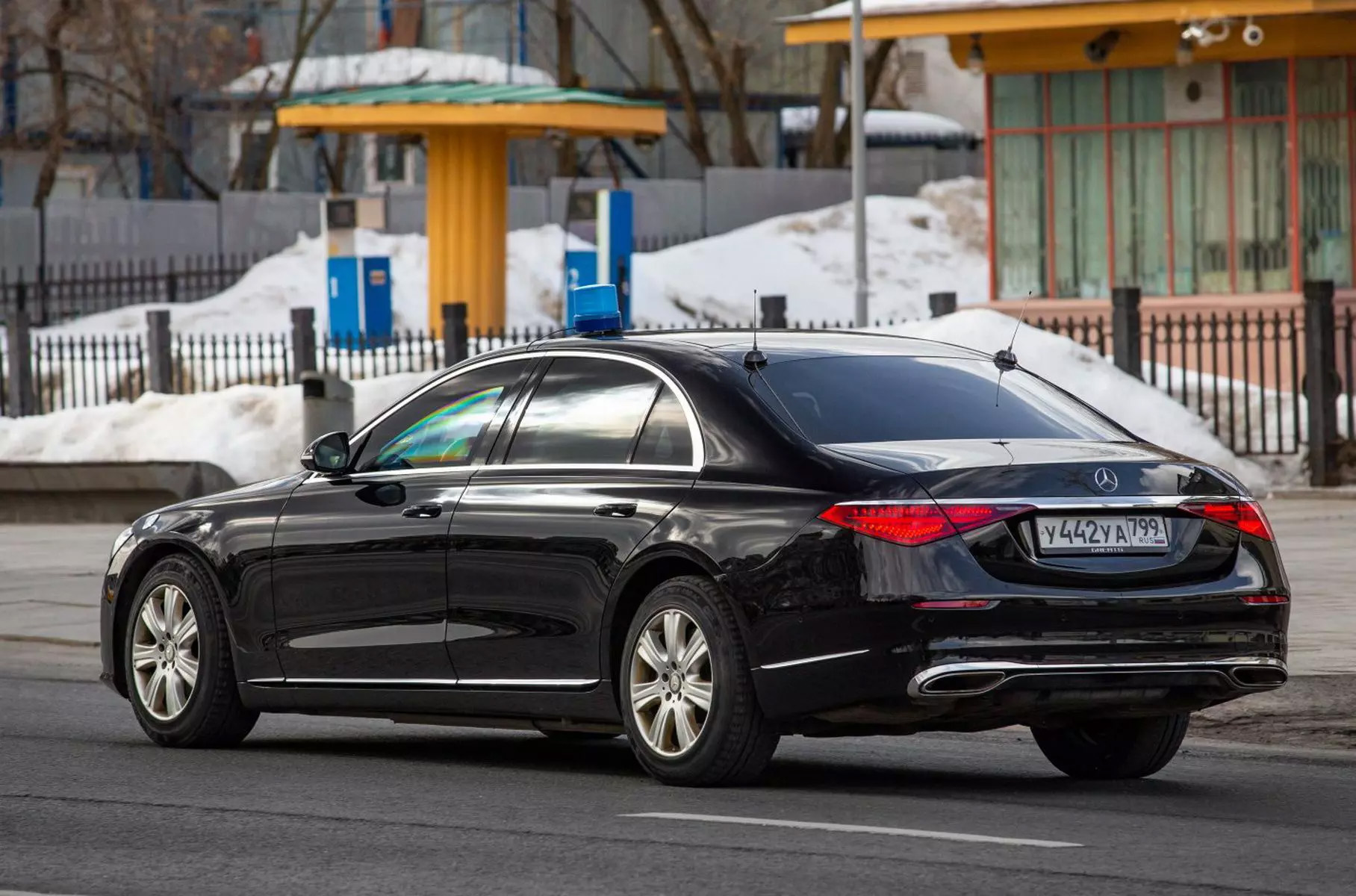 В Сети появились фото бронированного седана Mercedes-Benz S 680 Guard 4Matic с номерами, указывающими принадлежность к силовым структурам России. На это указывает синий маячок, антенны на крыше и пропуск под лобовым стеклом. Закупка таких машин спецслужбами (ФСО, ФСБ, Служба внешней разведки и ряд других) не противоречит законодательству, но это скорее исключение: сейчас российские ведомства переходят на отечественные и китайские авто.