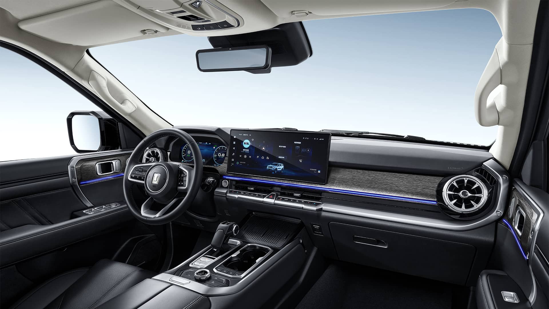 В оснащении полноприводного внедорожника — трехзонный климат-контроль, адаптивный круиз-контроль, беспроводная зарядка для смартфона, парковочные датчики и спереди, и сзади, система кругового обзора, бесключевой доступ, панорамная крыша, подогрев, вентиляция и массаж передних кресел.