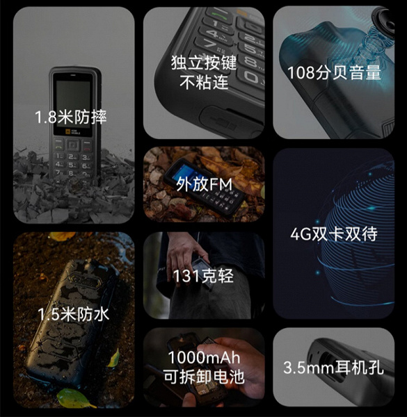 Емкость аккумулятора составила всего 1000 мАч, но учитывая характеристики, автономность должна быть приличной. Телефон построен на SoC Ziguang Zhanrui T10 c одноядерным процессором (та же платформа в Nokia 105 4G), 48 МБ ОЗУ, 128 ГБ флеш-памяти. Есть слот для карты microSD, поддерживаются носители объемом 128 ГБ.