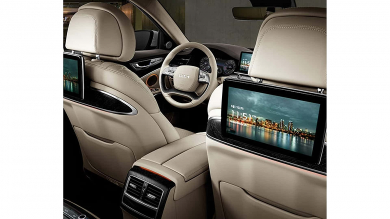 Другие изменения, внесенные в Kia K9 2025 года, включают массаж для сиденья переднего пассажира, порты USB-C спереди и сзади и даже огнетушитель.
