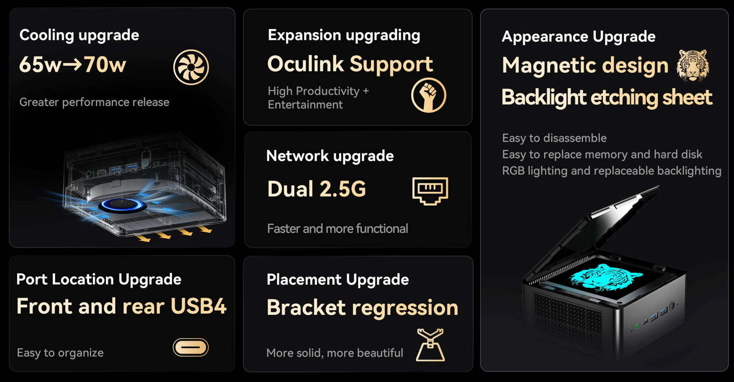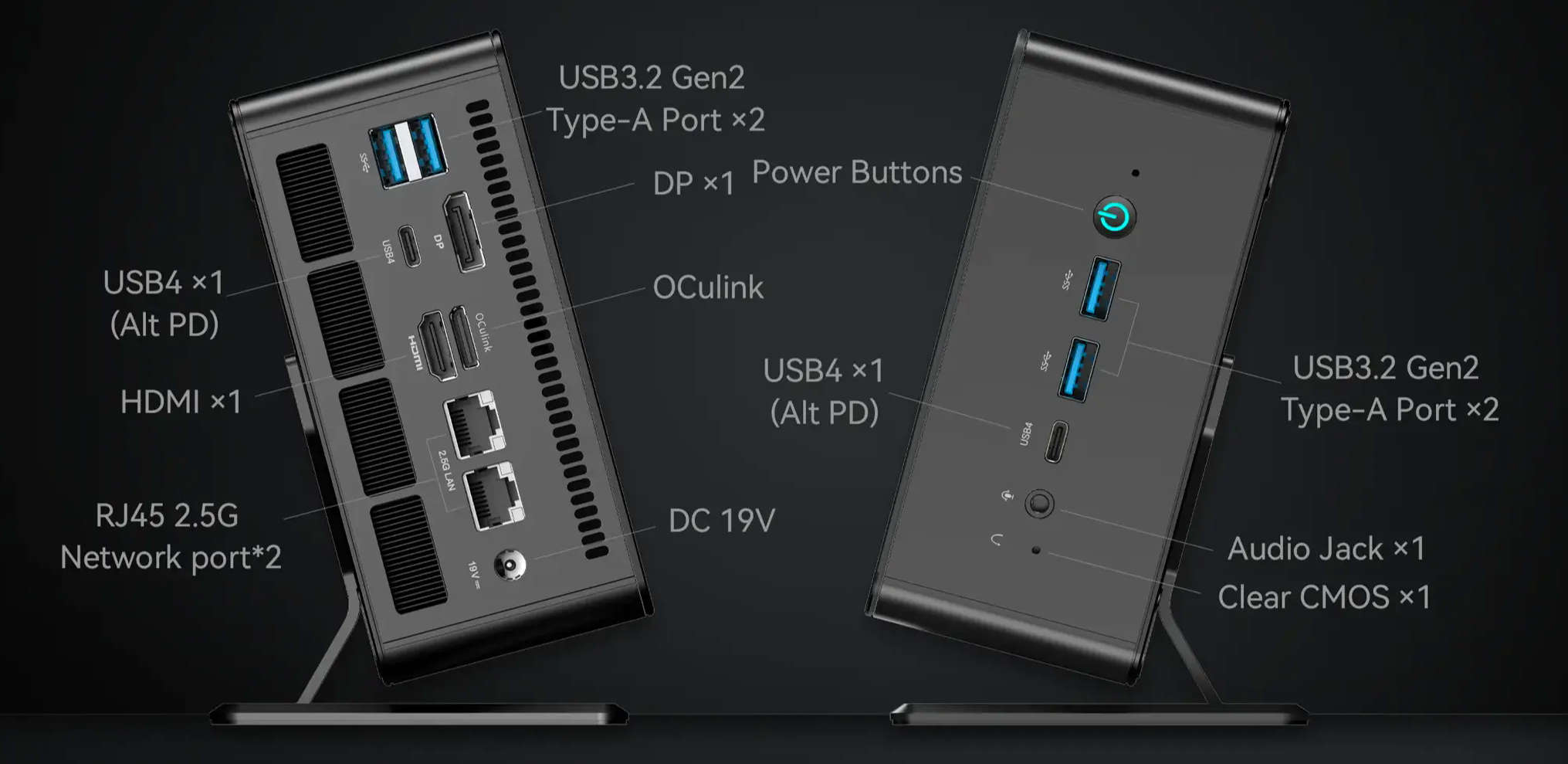 Особенность непосредственно самого мини-ПК — возможность по нажатию кнопки активировать режим повышенной производительности, в котором TDP APU увеличивается до 70 Вт (у Ryzen 7040HS оно варьируется в диапазоне от 35 до 54 Вт).