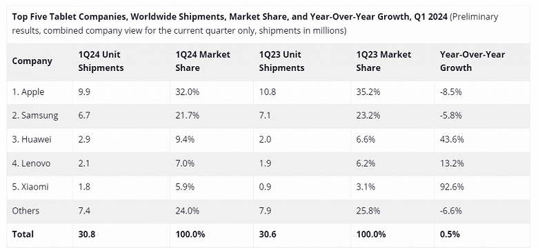 Покупатели «сбежали» от Apple и Samsung к Huawei и Xiaomi. Статистика рынка планшетов за прошлый квартал оказалась довольно неожиданной