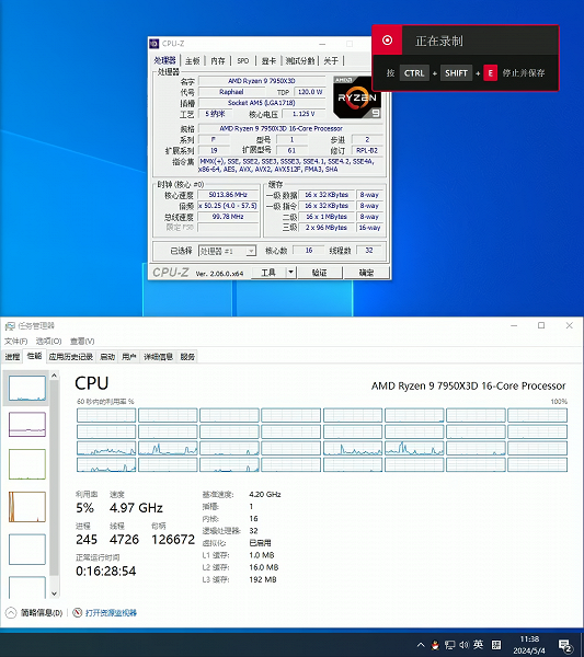 Процессор Ryzen 9 7950X3D, как и все остальные модели X3D, имеет дополнительную микросхему памяти V-Cache объёмом 64 МБ. Но один счастливчик в Китае раздобыл где-то экземпляр, который, похоже, оснащён 128 МБ такой кеш-памяти!
