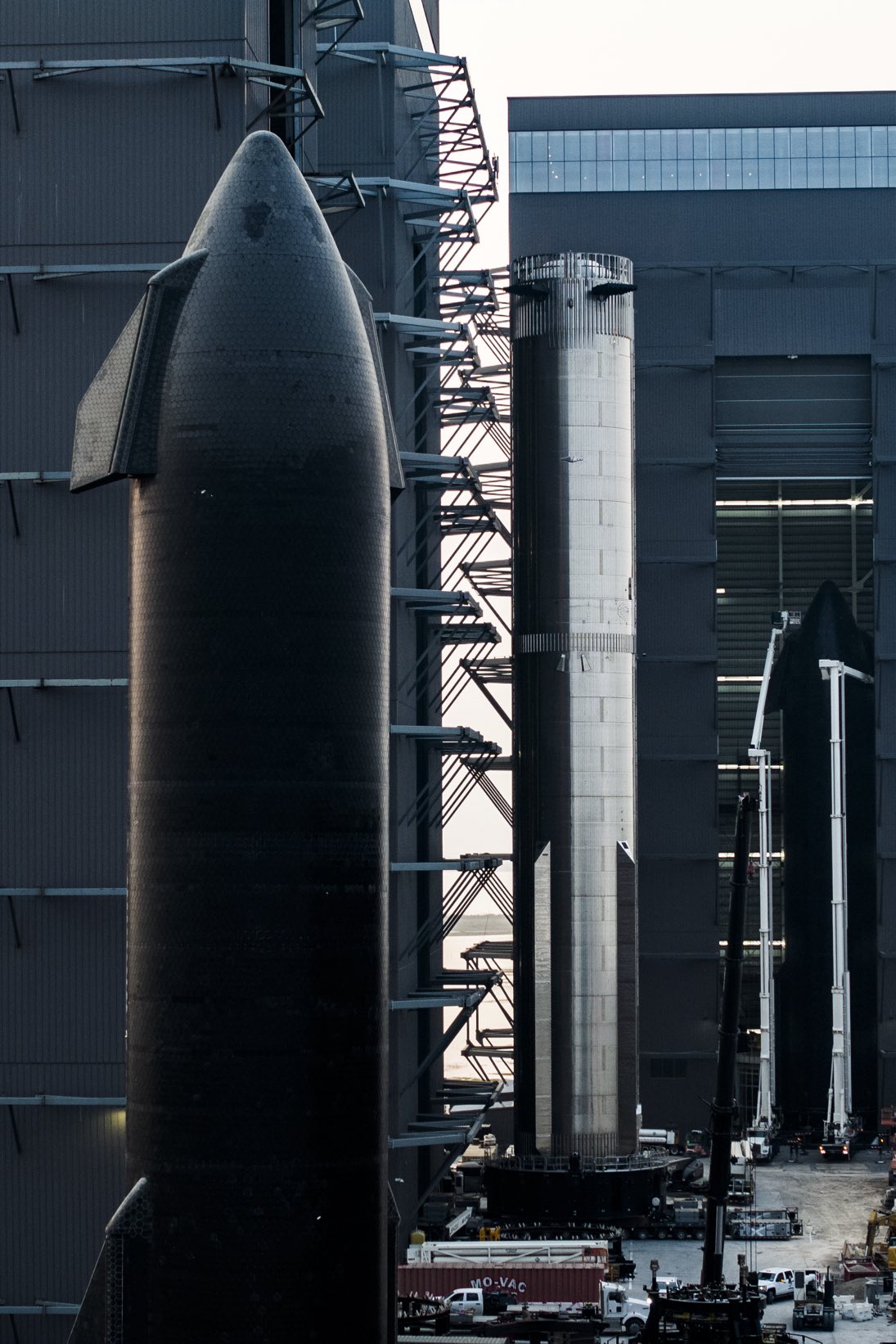 Маск также поделился новыми качественными фотографиями корабля и ускорителя на стартовой площадке. Если точнее, на одном из снимков можно видеть сразу два корабля.