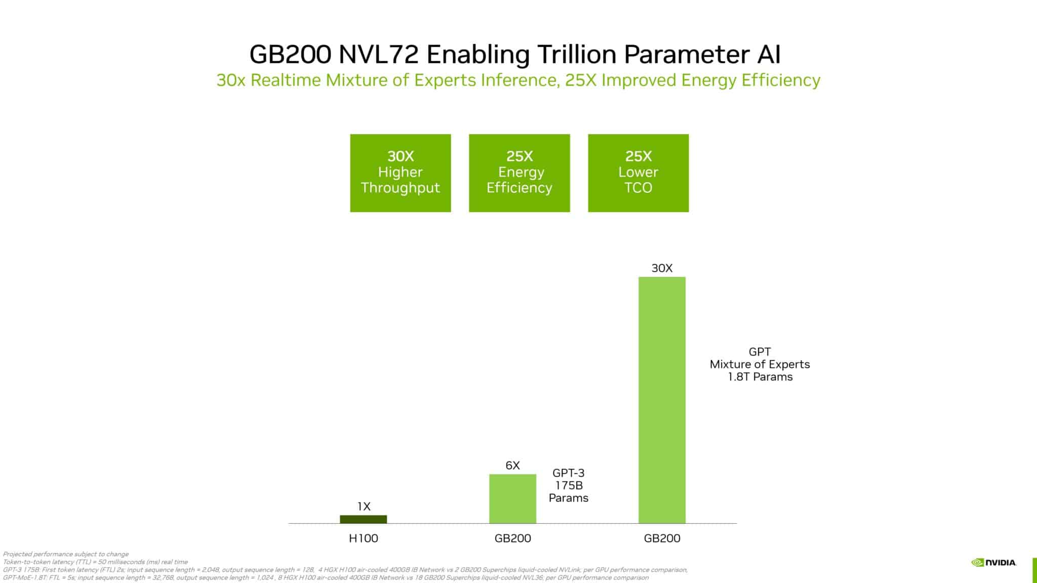 Но зато в тех задачах, для которых архитектура Blackwell и разрабатывалась, новое решение раскрывается во всей красе. В обучении модели с 1,8 трлн параметров GB200 опережает H100 в 30 раз, одновременно обеспечивая в 25 раз более высокую энергоэффективность и в 25 раз более низкую совокупную стоимость владения.
