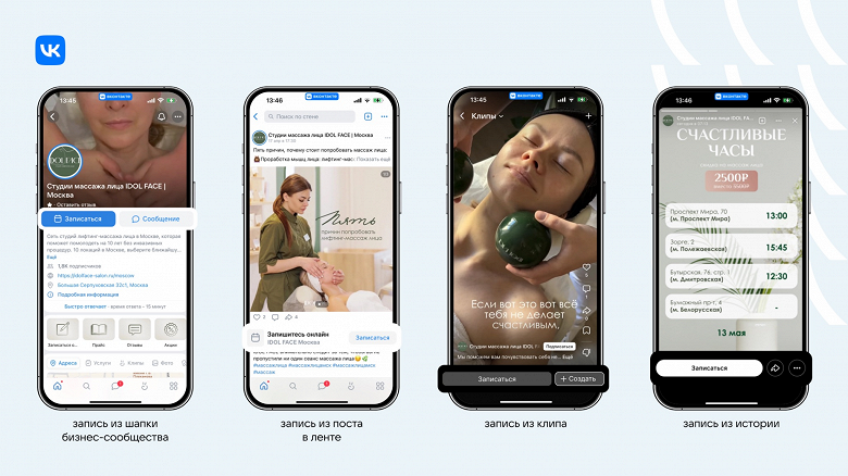 Компания VK (бывшая Mail.ru Group) объявила о запуске полезного нововведения для пользователей социальной сети «ВКонтакте» – интеграции с платформой Yclients. Благодаря этому пользователи смогут за несколько секунд записаться в салоны красоты, медицинский центр или студию йоги, не отрываясь от просмотра новостной ленты, клипов и историй в соцсети.