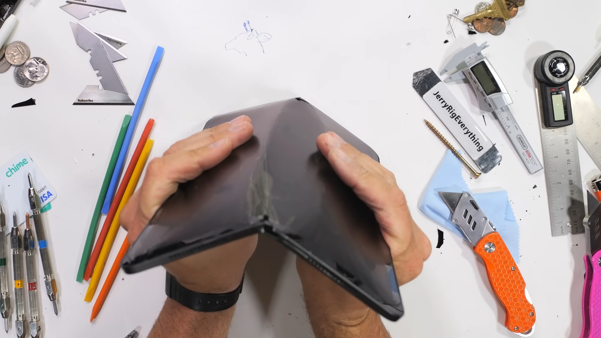 Новый iPad Pro 13 довольно легко не просто погнуть, а сломать голыми руками, что уже показал известный блогер JerryRigEverything. Теперь он же проверил на прочность младшую 11-дюймовую модель.