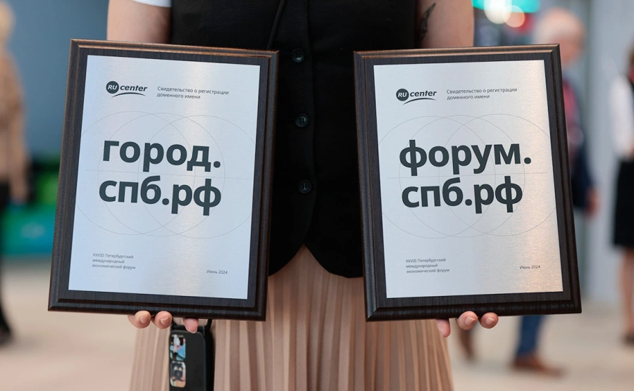 Фото: Михаил Гребенщиков / РБК В честь открытия новой доменной зоны Ru-Center вручил первые домены Санкт-Петербургу и фонду «Росконгресс» — город.спб.рф и форум.спб.рф.