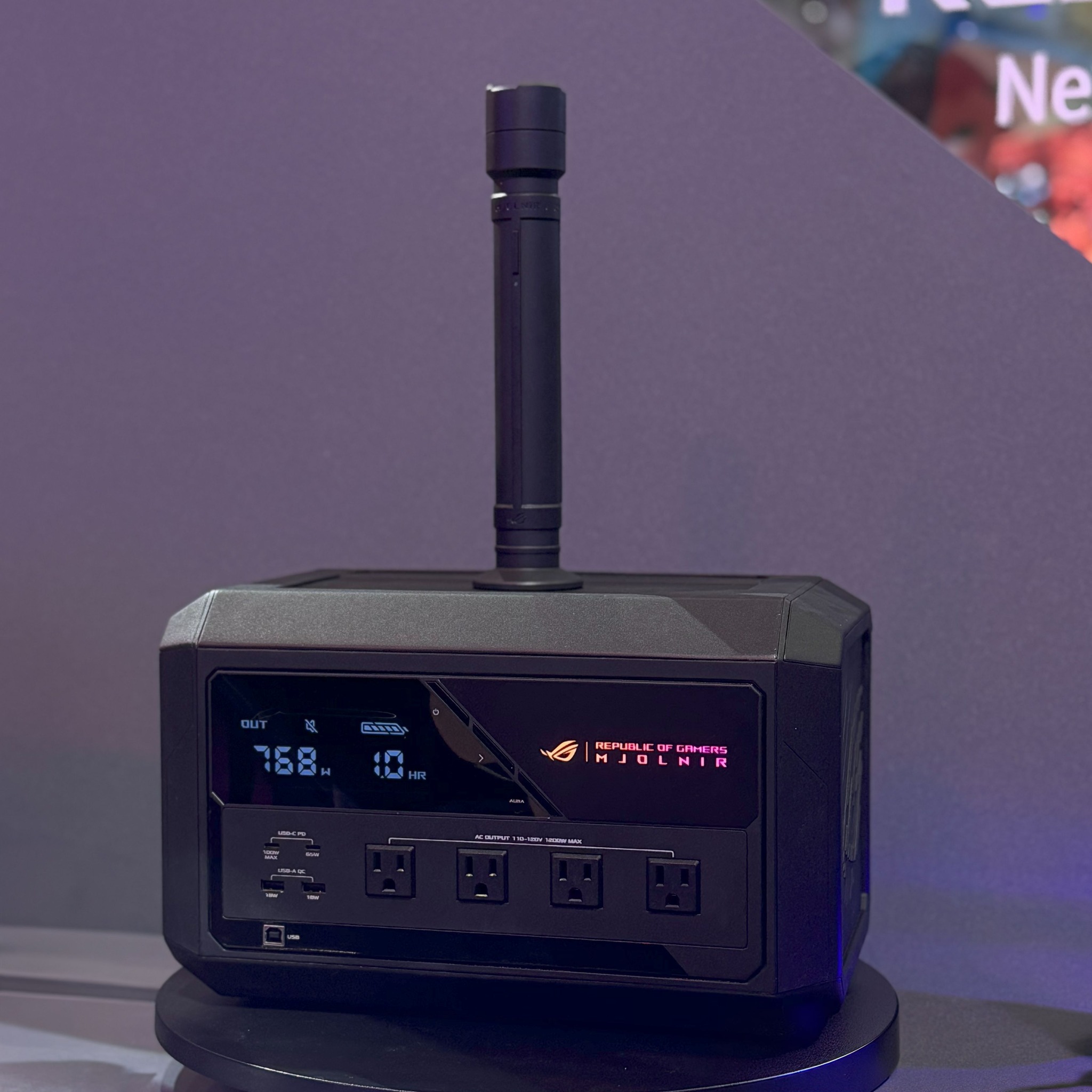Компания Asus привезла на Computex 2024 устройство под названием ROG Mjolnir. Это портативный аккумулятор, выполненный в стиле молота. Как ясно из названия, конкретно Мьёльнира — оружия бога Тора.