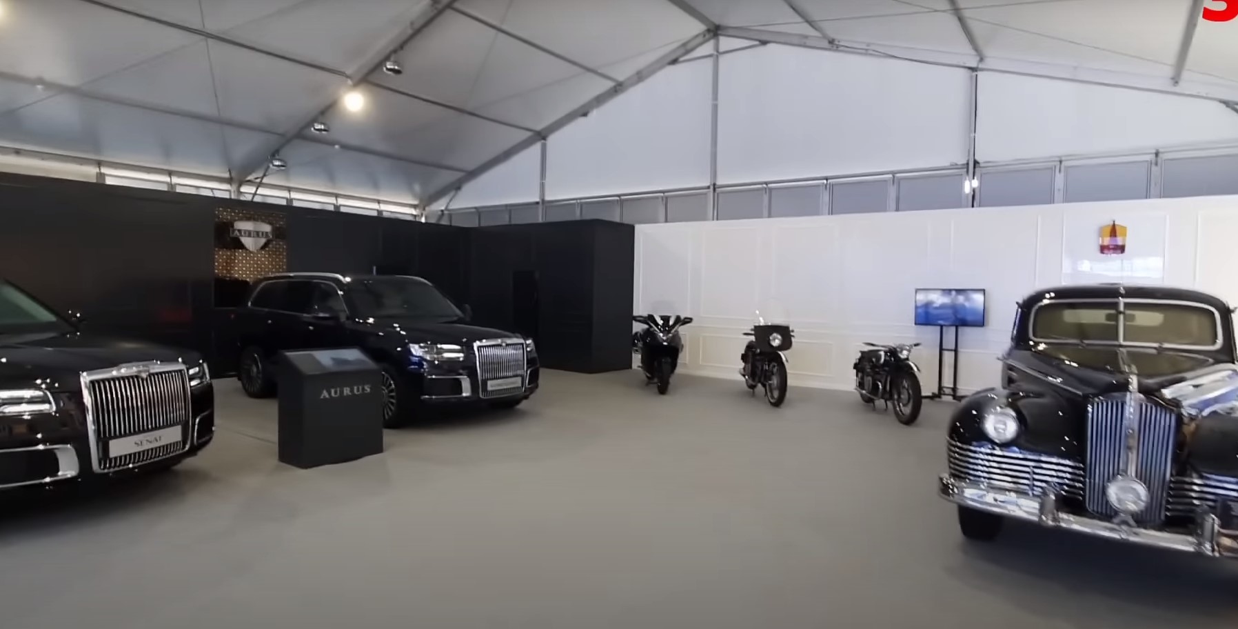 Aurus показал мотоцикл Merlon в серийном исполнении, а также кортежные М-72 и К-150. Кроме того, выставляли ЗИС-115 выпуска 1954 года.
