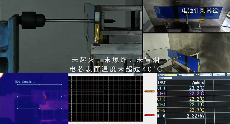 Geely на пресс-конференции уделила большое внимание безопасности. После того, как аккумулятор пробили гвоздем, не было ни пожара, ни взрыва, ни дыма, а температура поверхности батареи не превысила 40°С. Кроме того, аккумуляторный блок выдержал погружение в морскую воду. Аккумулятор также выдерживает падения и сильные удары.