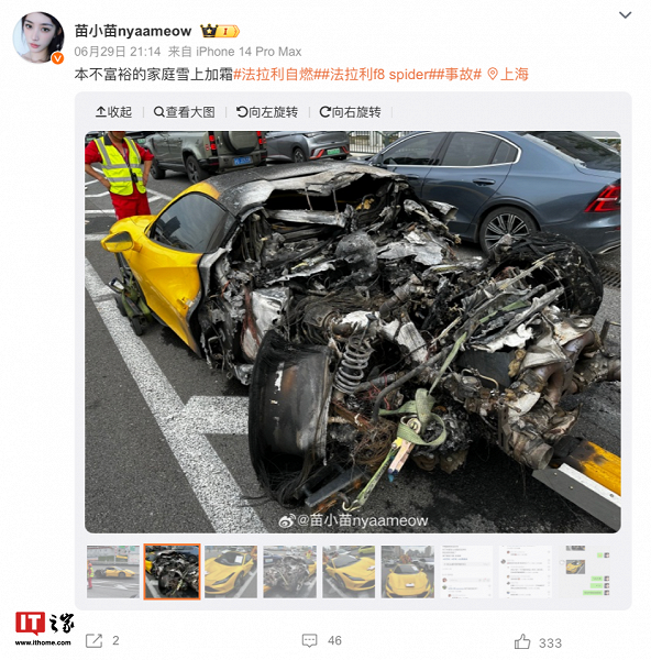 «Самовозгорание шанхайского Ferrari» стало самой горячей новостью в социальной сети Weibo 30 июня, которую прочитали более миллиона человек.