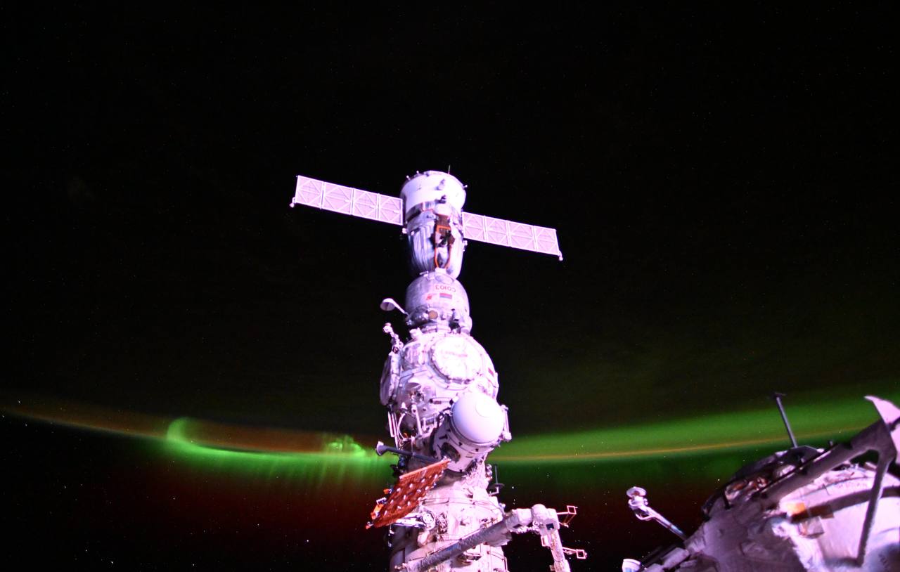 Фото дня: корабль «Союз МС-25» с борта МКС на фоне рассвета