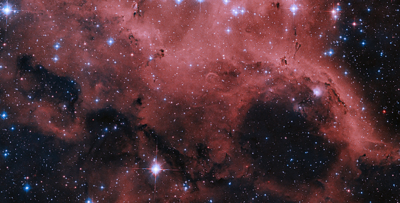 На этом снимке Хаббла показано сложное скопление эмиссионных туманностей, расположенных внутри Большого Магелланова Облака. Источник: NASA, ESA, and J. M. Apellaniz (Centro de Astrobiologia (CSIC/INTA Inst. Nac. de Tec. Aero.); Gladys Kober (NASA/Catholic University of America) Скопление N11, имеющее примерно 1000 световых лет в поперечнике, представляет собой раскинувшиеся нити, сплетающие звёздную материю друг с другом. Эти облака газа ионизированы растущим множеством молодых и массивных звёзд, что придает комплексу вишнёво-розовый вид.