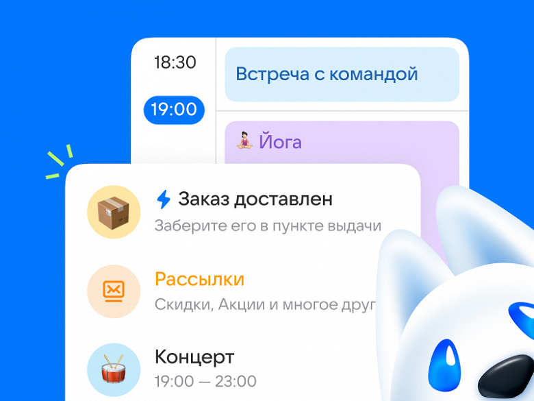 Иллюстрация: VK Обновления в дизайне затронут все каналы коммуникации сервисов, в том числе: «Почту», главную страницу, «Облако», а также «Заметки», «Календарь» и «Покупки». Теперь в логотипе отсутствует доменная зона — .ru, а в цветовую палитру добавился обновленный синий и салатовый. Кроме обновленного визуального языка появится талисман — белый пес Байт.