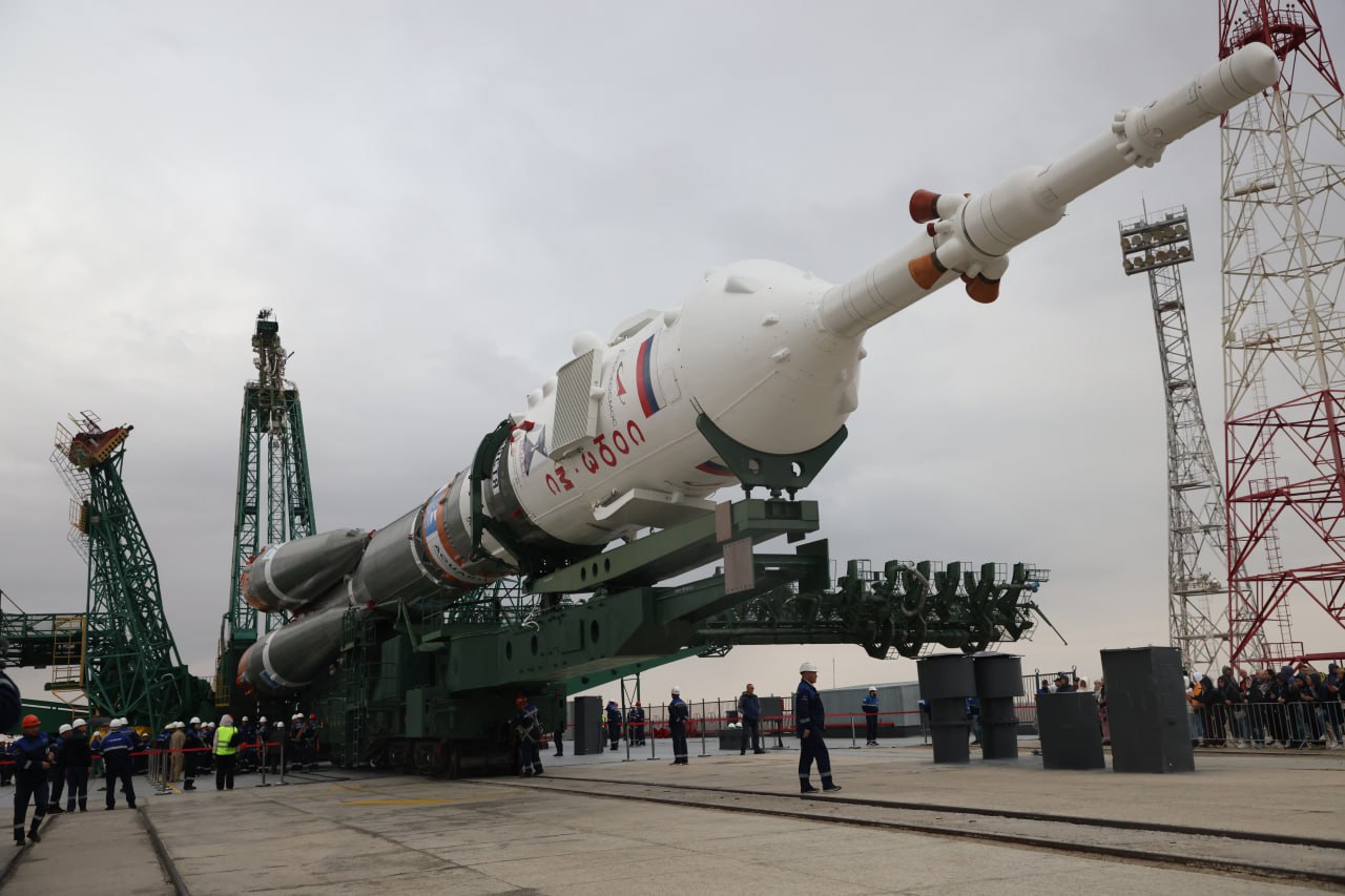 Ракета «Союз-2.1а» с пилотируемым кораблём «Союз МС-26» установлена на старте Байконура