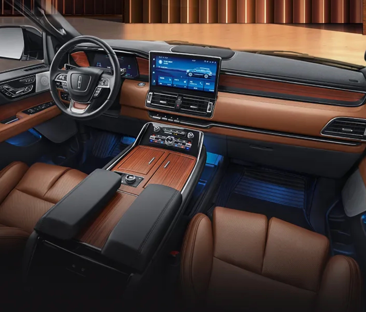 Фото Lincoln Передние сиденья имеют 30-позиционную электрическую регулировку и пять режимов массажа. Сиденья второго ряда имеют функции подогрева, вентиляции и массажа. Кроме того, автомобиль оснащен аудиосистемой Revel с 28 динамиками и системой помощи водителю L2+.