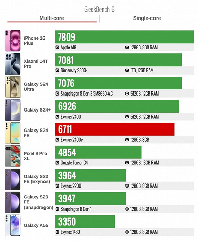 Samsung проделала отличную работу. Samsung Galaxy S24 FE на Exynos 2400e оказался мощнее Google Pixel 9 Pro XL и iPhone 16