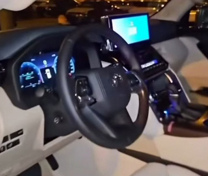 Заснял обновленный внедорожник Халед Аль-Ремити с Ближнего Востока. Ресурс Carscoops опубликовал скриншот с видео, на котором запечатлен интерьер машины. Новшество, которое заметно сразу, — новая цифровая панель приборов с экраном диагональю 12,3 дюйма (у текущего Land Cruiser 300 полуцифровой кластер с двумя аналоговыми датчиками и небольшим центральным экраном). Отмечается, что графика почти такая же, как у новых минивэнов Toyota Alphard и Vellfire.