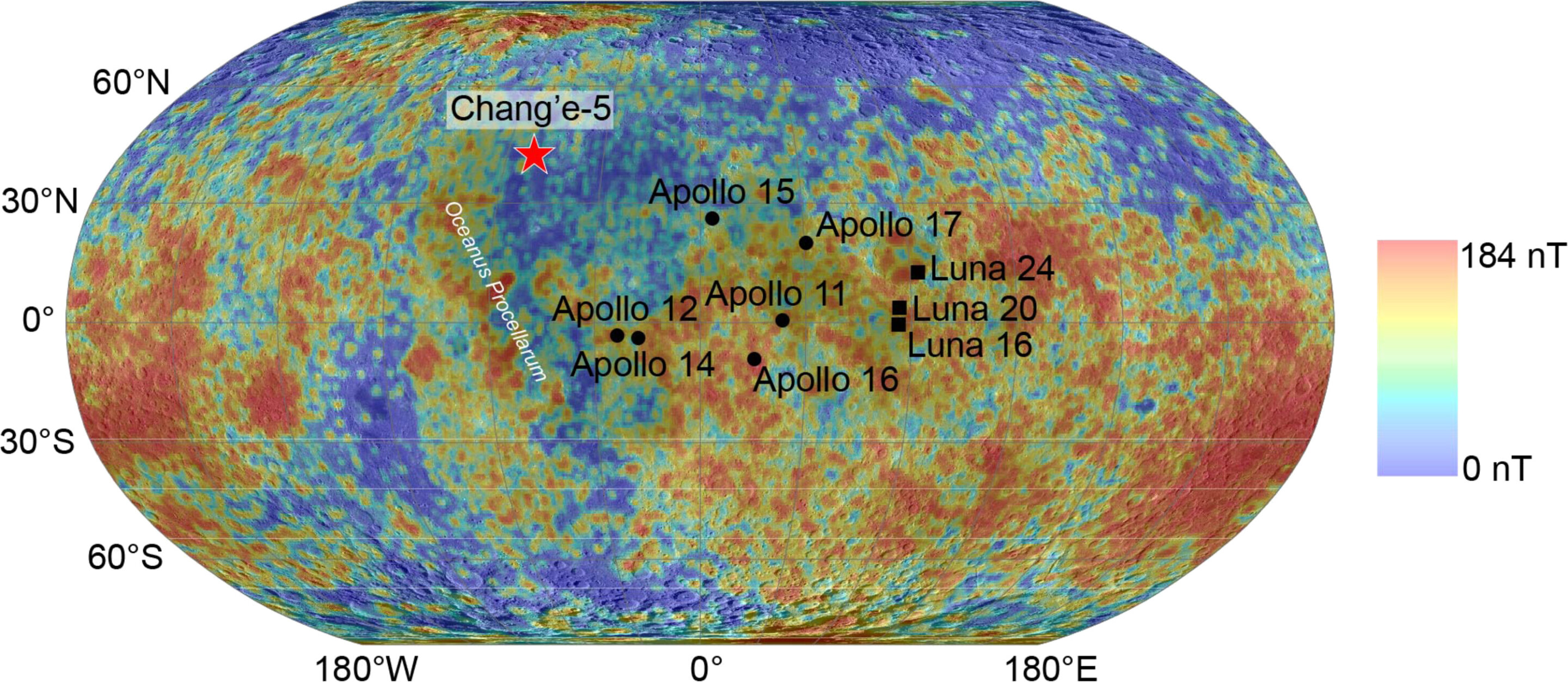 В 2020 году космический зонд «Чанъэ-5» вернулся на Землю с 1731 граммом лунной пыли и камней, которые с тех пор изучаются различными научными группами. Бенджамин Вайс из Массачусетского технологического института, опубликовавший обзорную статью в том же выпуске журнала, подчеркнул важность этого исследования в контексте изучения истории магнитного поля Луны.