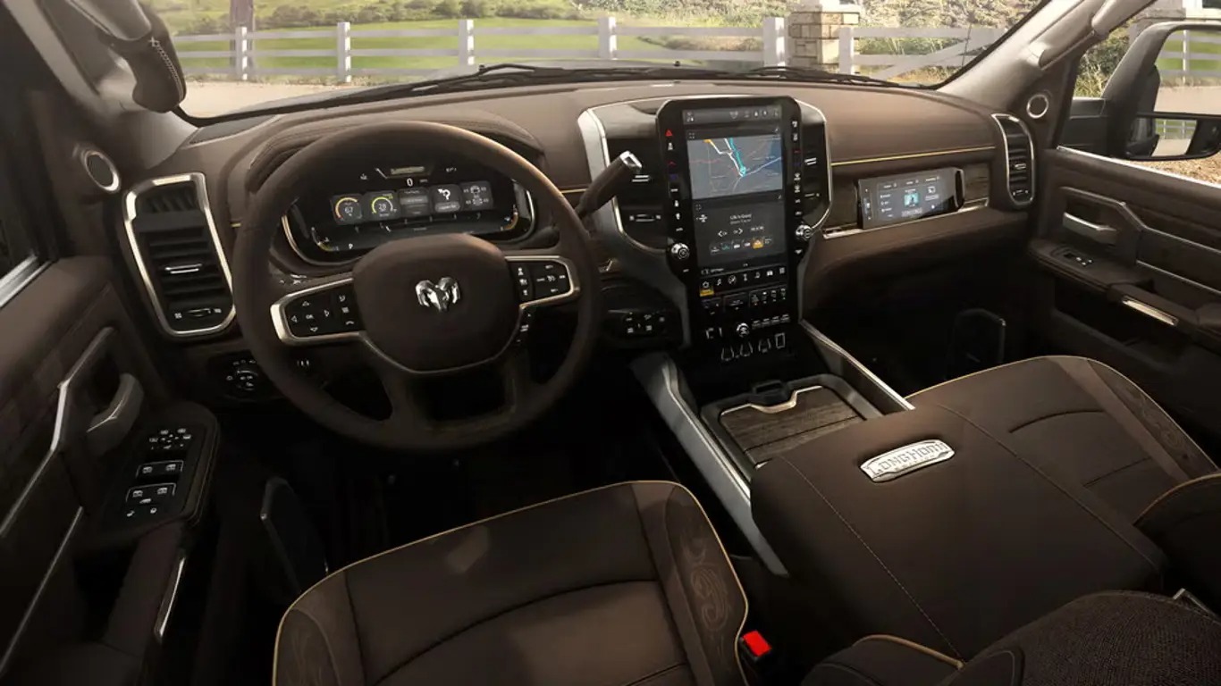 Одним из главных изменений стал новый 6,7-литровый турбодизель Cummins с рядной шестеркой. Мотор развивает 430 л.с. и выдает внушительные 1 457 Нм крутящего момента, что делает его лидером в своем классе. Этот двигатель работает в паре с восьмиступенчатой автоматической трансмиссией и обеспечивает буксировочную способность до 16 605 кг. Для любителей бензиновых моторов доступен 6,4-литровый V8 Hemi мощностью 405 л.с. и 582 Нм, который также комплектуется новой трансмиссией.