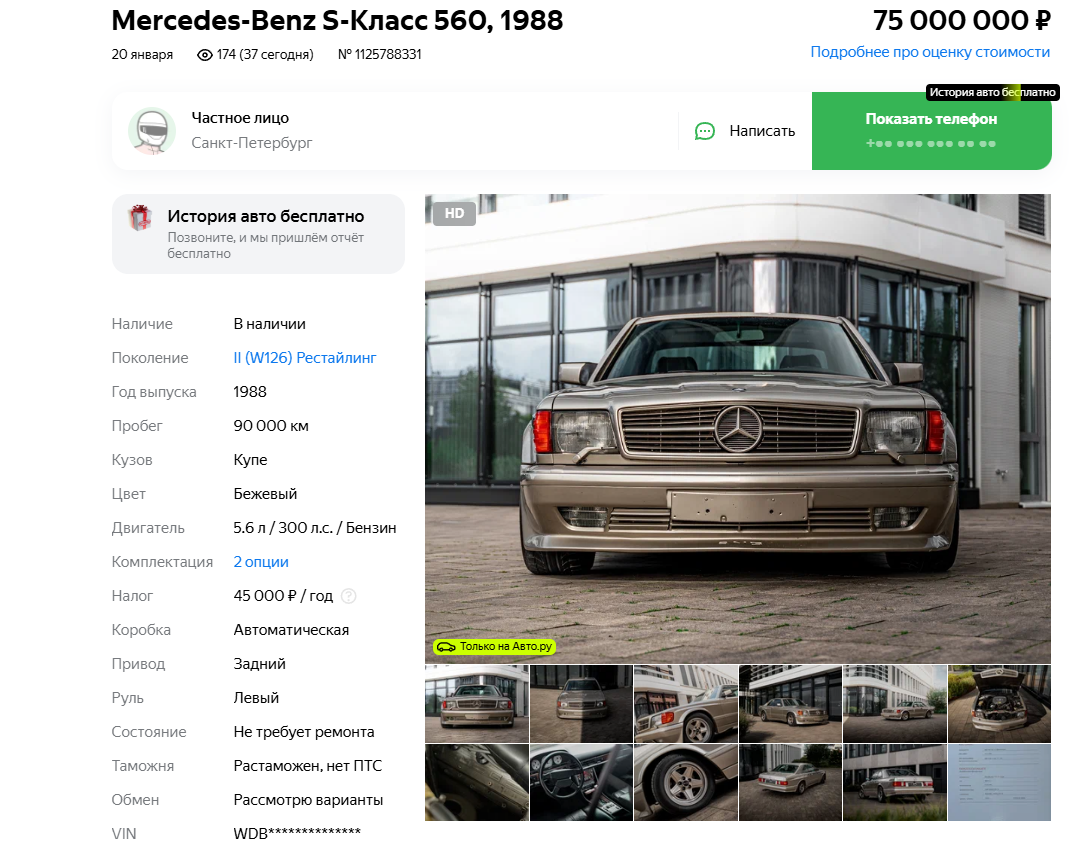 Фото auto.ru Осенью прошлого года машину пытались продать за 85 млн рублей.
