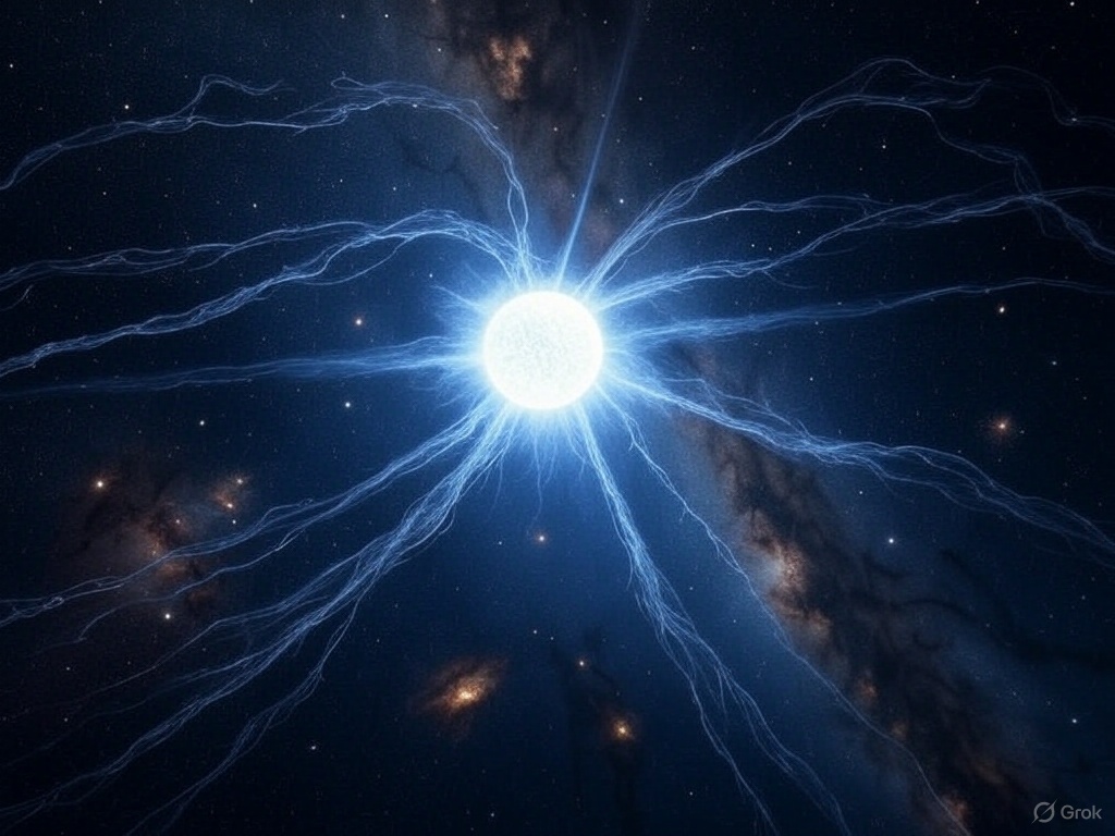 Изображение сгенерировано Grok «Если бы эта «звезда-зомби» пролетела вблизи Земли, она стерла бы данные с банковских карт и уничтожила все живое на расстоянии менее 1000 км» - предупредили в NASA. Магнитное поле SGR 0501+4516 настолько мощное, что могло бы искажать пространство и вызывать энергетические вспышки, видимые за миллиарды километров.
