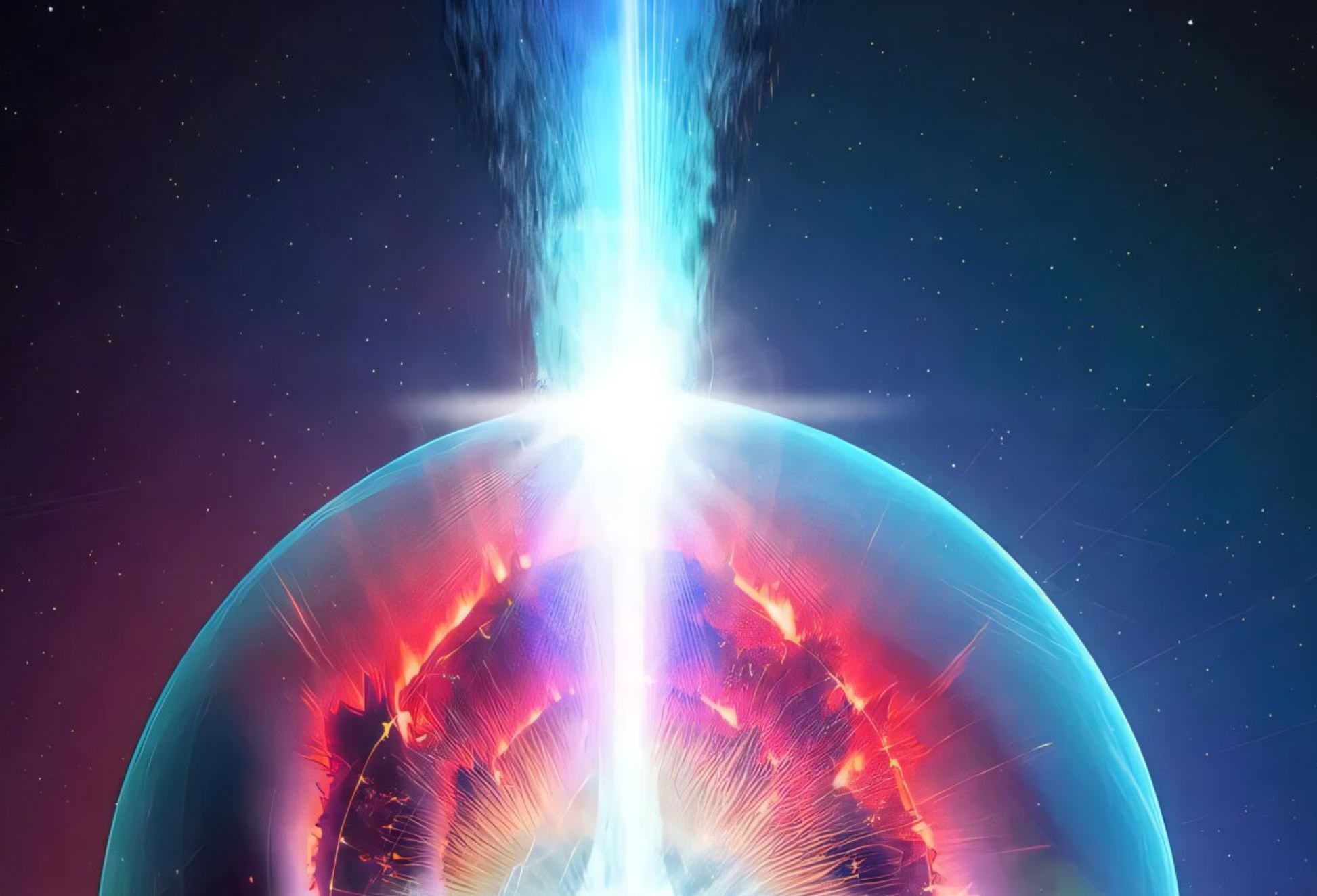 Когда массивная звезда исчерпывает своё ядерное топливо, она коллапсирует под собственной гравитацией, образуя чёрную дыру. Если чёрная дыра быстро вращается, её магнитное поле закручивается, создавая сверхмощный поток высокоэнергетических фотонов — гамма-лучей. Этот поток, подобно грузовому поезду, пробивающемуся через снег, прорезает звезду, формируя вокруг себя горячую оболочку — кокон. На границе потока и звёздного вещества фотоны сталкиваются с атомными ядрами, превращая протоны в нейтроны и разрушая ядра на отдельные частицы.