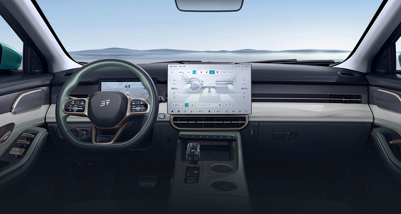 Интерьер выполнен в чёрных тонах с 10,25-дюймовым экраном приборной панели и 15,6-дюймовым центральным дисплеем, работающим на процессоре Qualcomm Snapdragon 8155, характерном для топовых смартфонов. Это обеспечивает высокую производительность мультимедийной системы и удобство управления функциями автомобиля.