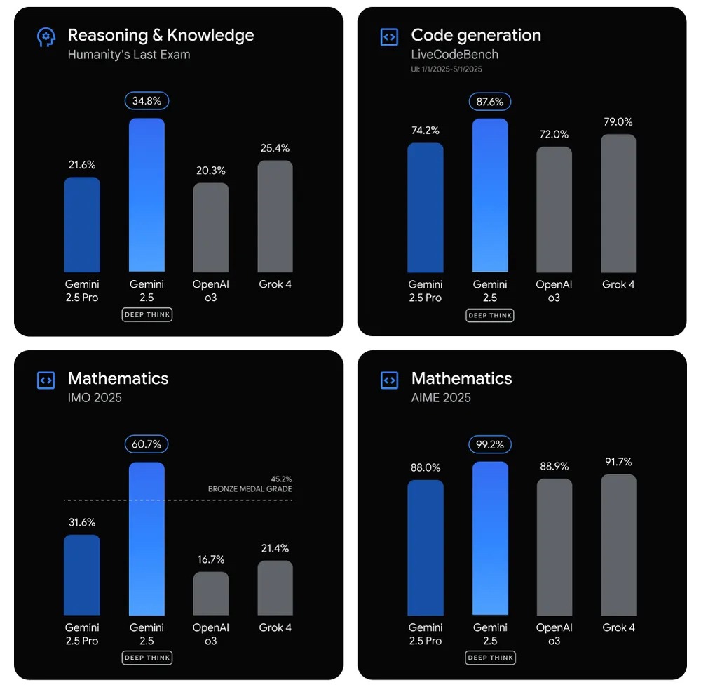 Лучше ChatGPT o3 и Grok 4. Представлена модель Gemini 2.5 Deep Think от Google