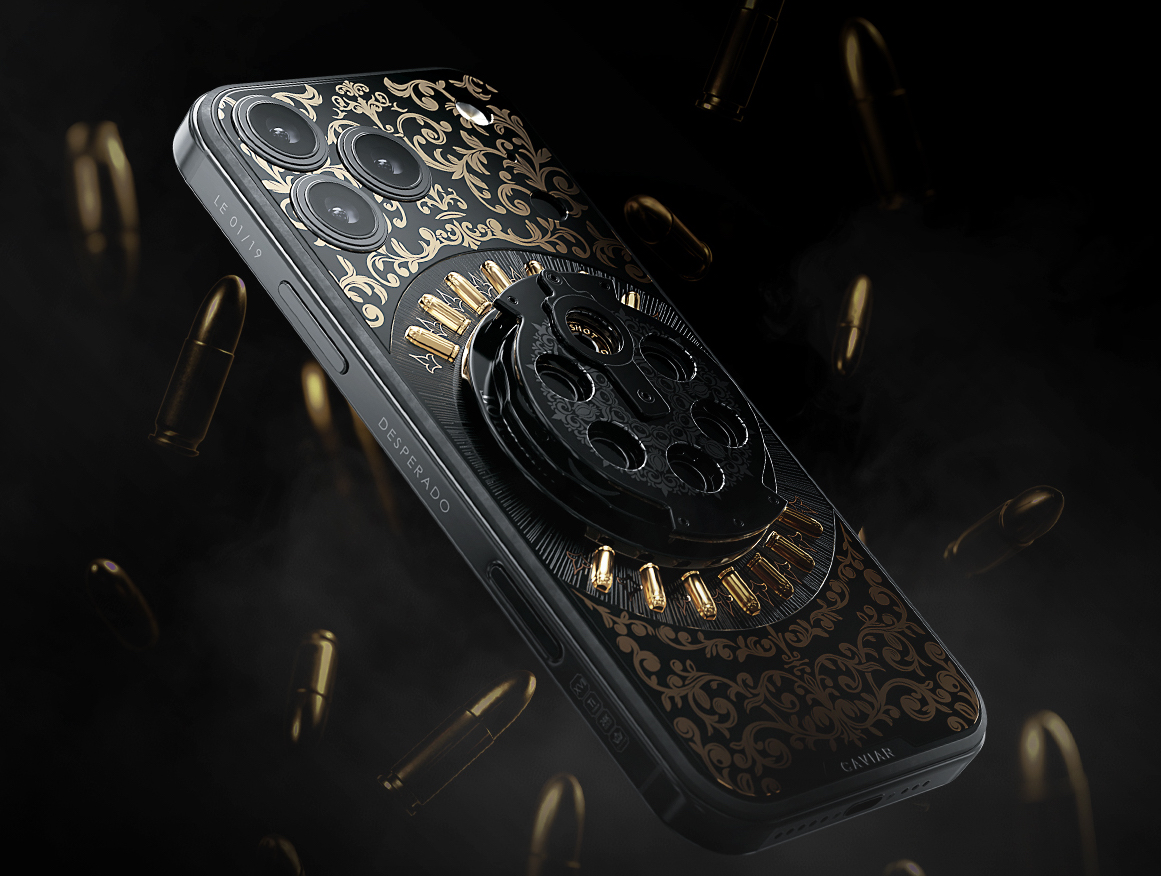Владелец может играть в «русскую рулетку», вращая барабан, без малейшего риска для жизни. Смартфон украшен золотыми и серебряными гравировками, вдохновленными декором премиального оружия. Серия ограничена 19 экземплярами.