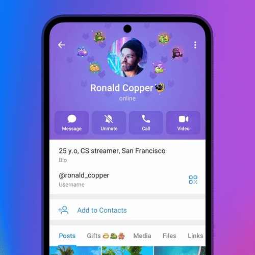 Иллюстрация: Telegram Приложение для Android обзавелось новым дизайном профилей с анимацией прокрутки, впервые представленными на iOS. Также теперь пользователь может выбрать, какая вкладка будет отображаться первой, когда кто-то открывает профиль.