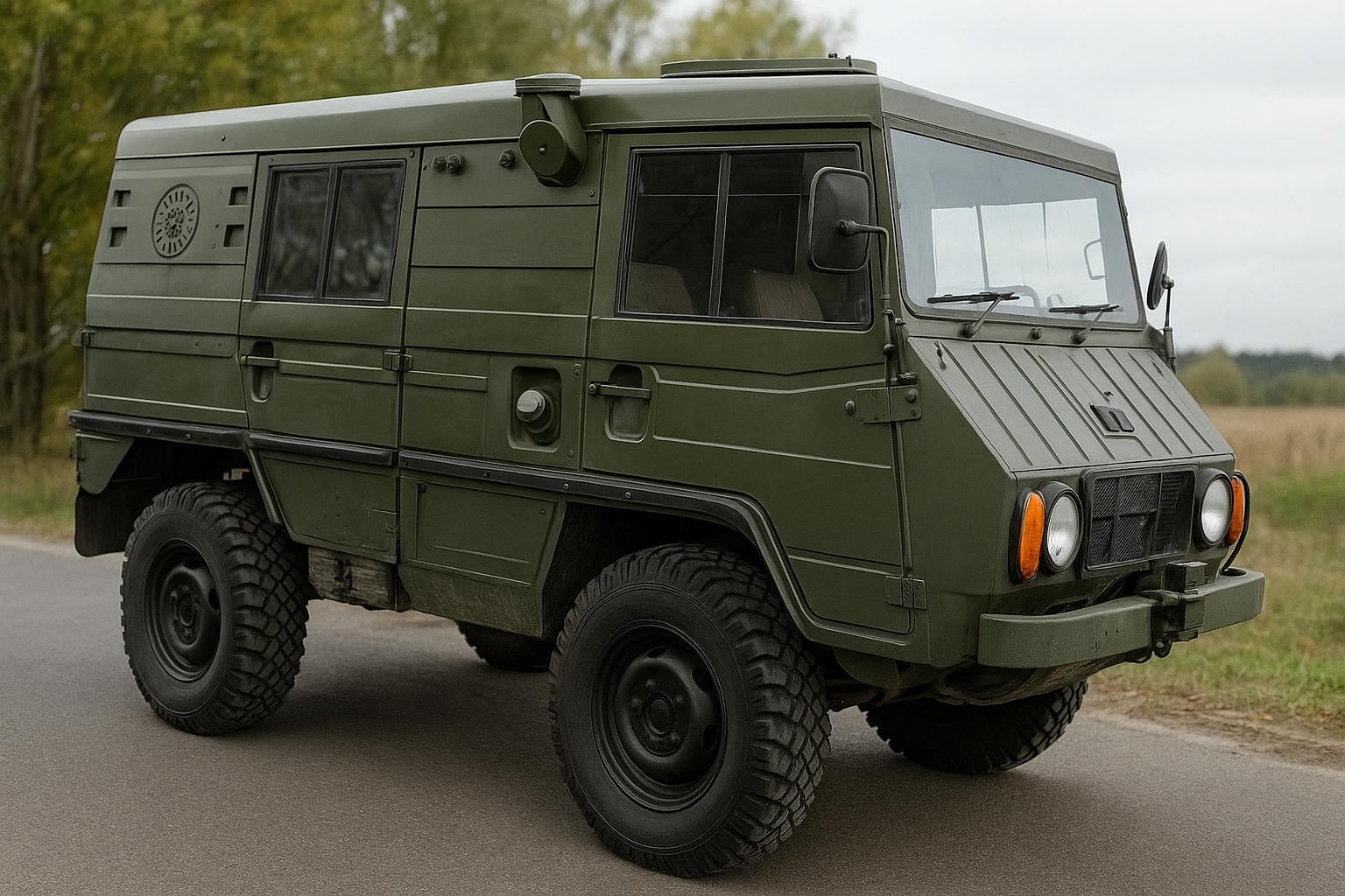 Изображение сгенерировано ChatGPT Pinzgauer — легендарный армейский внедорожник, созданный в Австрии компанией Steyr-Puch. Версия 710К представляет собой командирский вариант: у машины портальные мосты, 2,5-литровый бензиновый мотор мощностью 92 л.с., механическая коробка передач и полный привод. Владелец машины отмечает, что для управления Pinzgauer достаточно водительского удостоверения категории «B», так как по документам он числится как легковой автомобиль.