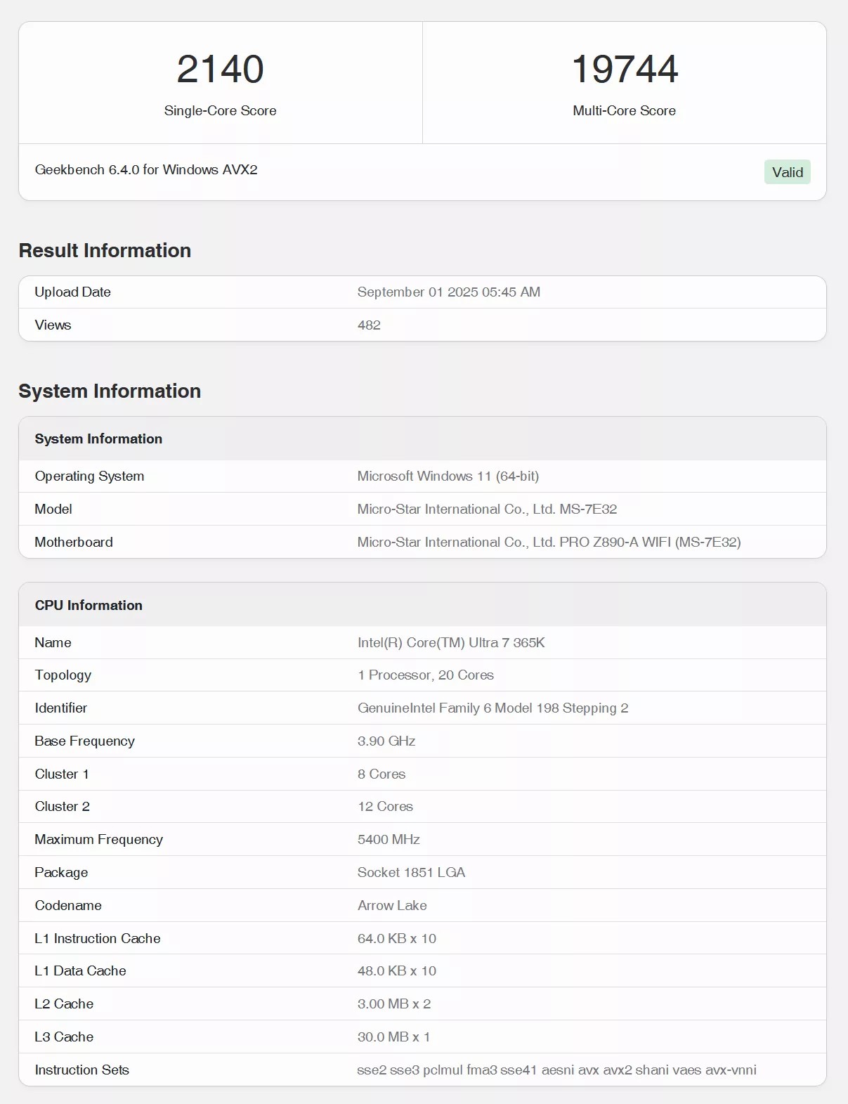 Берём Core Ultra 7 265K и переименовываем в Core Ultra 7 365K. Новинка впервые засветилась в тесте