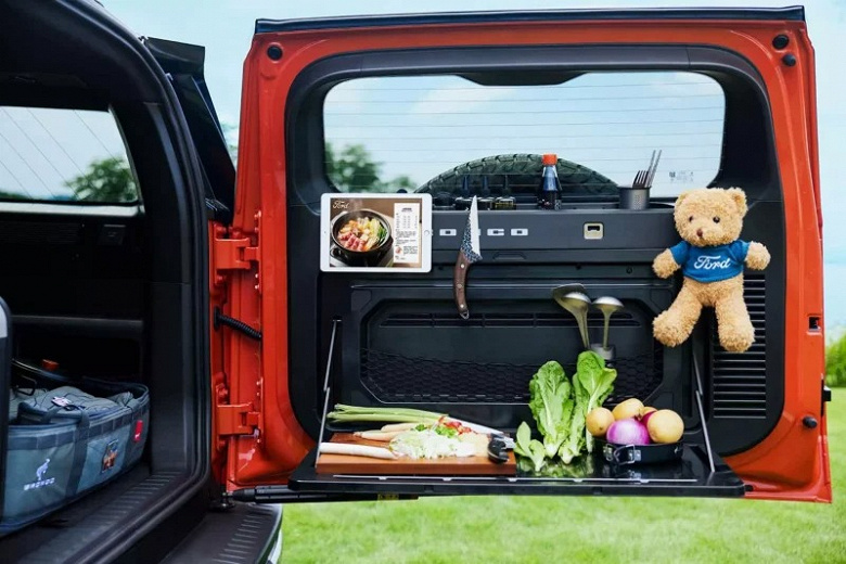 Фото Ford Комплектация также содержит походную кухню с откидным столом, магнитной планкой для ножей, подстаканниками и встроенной открывалкой для бутылок. Как и большинство китайских электромобилей этого класса, он оснащён лидаром и системой помощи водителю (ADAS), известной как Ford Fuyu, разработанной специально для китайского рынка.