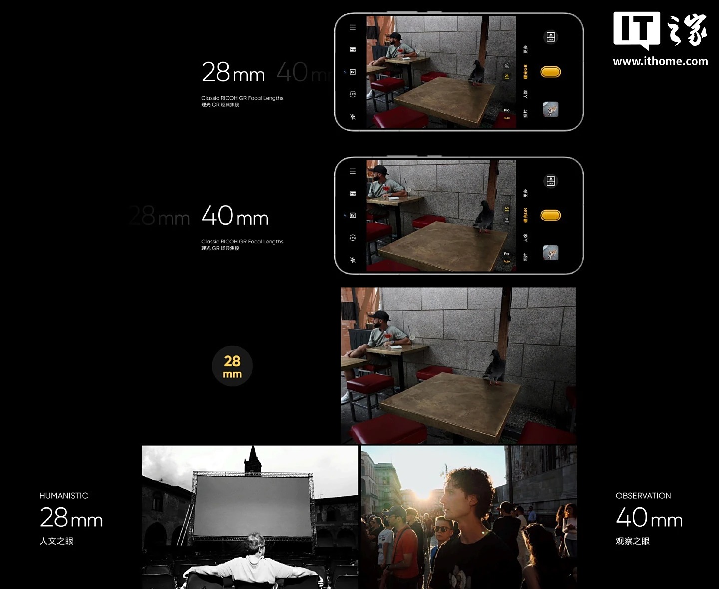 Ricoh GR III, выпущенный в марте 2019 года, получил фокусное расстояние 28 мм для уличной съёмки. Ricoh GR IIIx, выпущенный два года спустя, открыл новые перспективы для уличной фотографии благодаря фокусному расстоянию 40 мм. Realme GT8 Pro предложит обе опции.