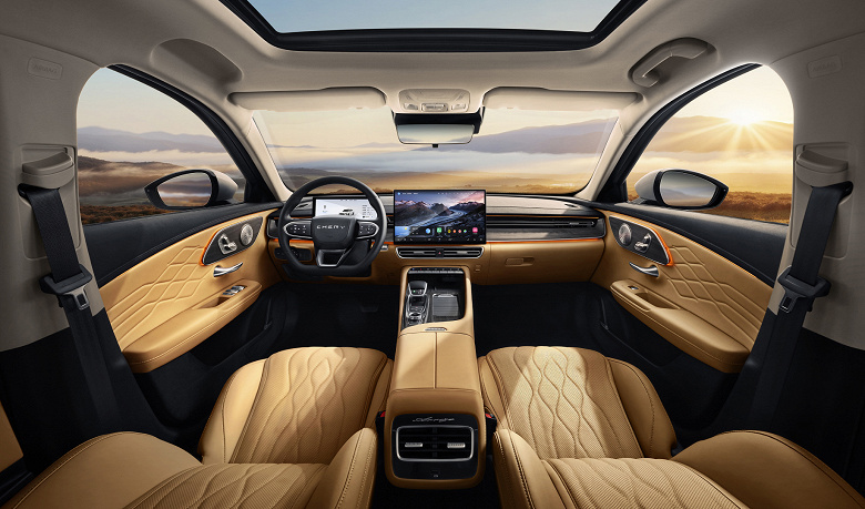 Фото: Chery В салоне — новый руль, улучшенные материалы отделки и переработанная передняя панель. Размер центрального экрана увеличился до 15,6 дюйма, разрешение возросло до 2,5К, а вот цифровая приборная панель стала компактнее (10,25 дюйма). Среди новых опций — функция массажа водительского кресла и беспроводная зарядка мощностью 50 Вт для смартфона.