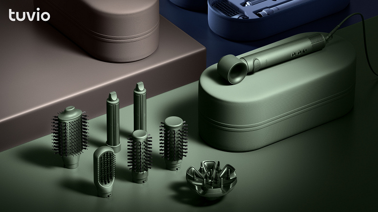 Иллюстрация: Яндекс В комплект входят насадка-фен для сушки, овальная насадка, цилиндрические насадки, вращающиеся насадки-брашинги, диффузор и насадка-расческа. Фен Tuvio скоро можно будет заказать на «Яндекс Маркете» с 5 декабря 2025 года в одном из трех цветов — зеленом, коричневом или синем. Стоимость устройства без персональной скидки составит 18 тысяч рублей.