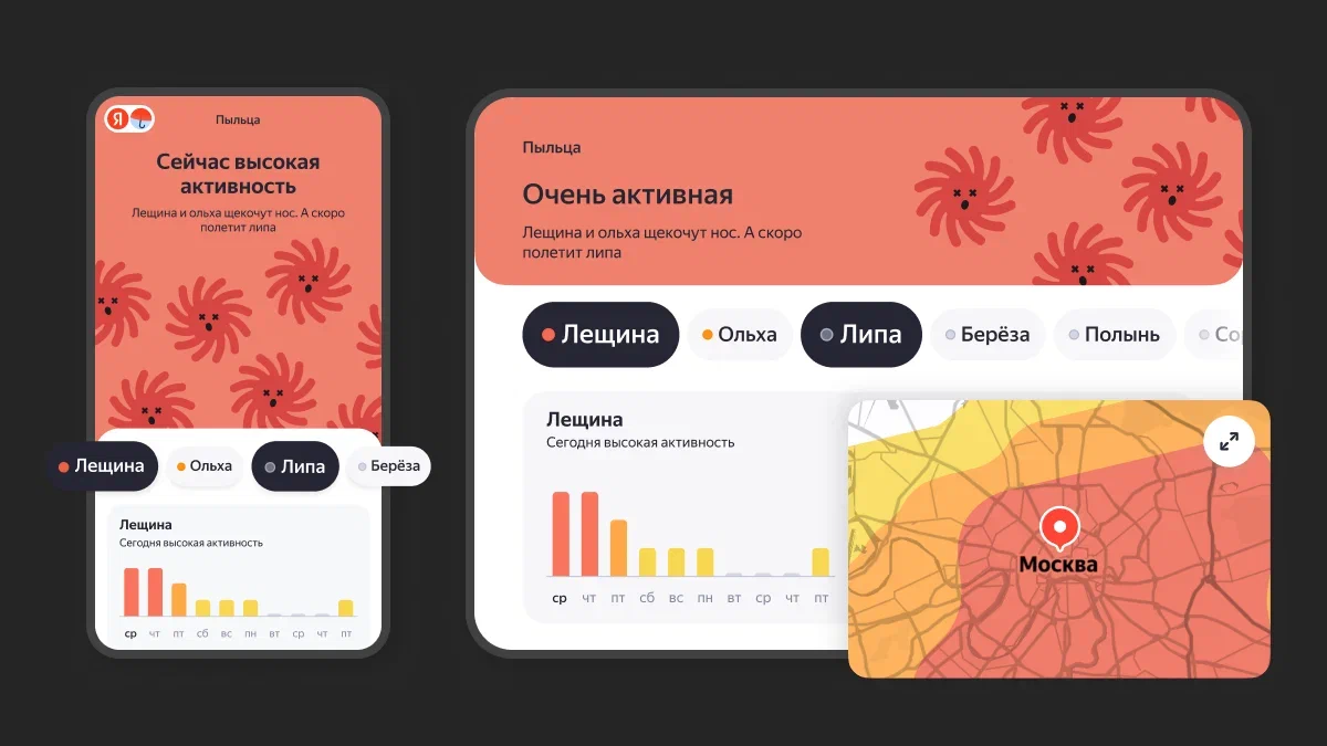 Команда «Яндекс Погоды» расширила охват прогноза активности пыльцы, добавив информацию о цветении лещины (орешника) и липы, а также учёт заносов пыльцы из других регионов. Теперь пользователи смогут получать более точные данные о концентрации аллергенов рядом с ними, даже если растения ещё не зацвели в их местности.